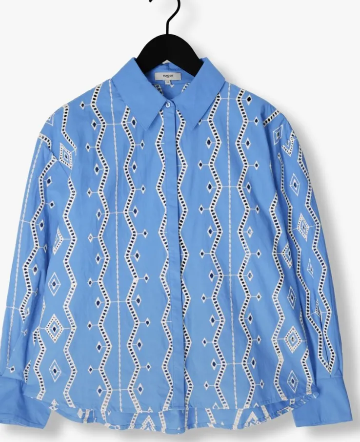 Met de LYDIA blouse van SUNCOO straal je elegantie en stijl uit. De lichtblauwe kleur geeft een frisse en vrouwelijke uitstraling. Draag deze blouse naar kantoor met een zwarte pantalon en pumps voor een professionele look. Of combineer het met een jeans en sneakers voor een casual-chique outfit in je vrije tijd. Deze blouse is een veelzijdig item dat niet mag ontbreken in de garderobe van elke moderne dame.