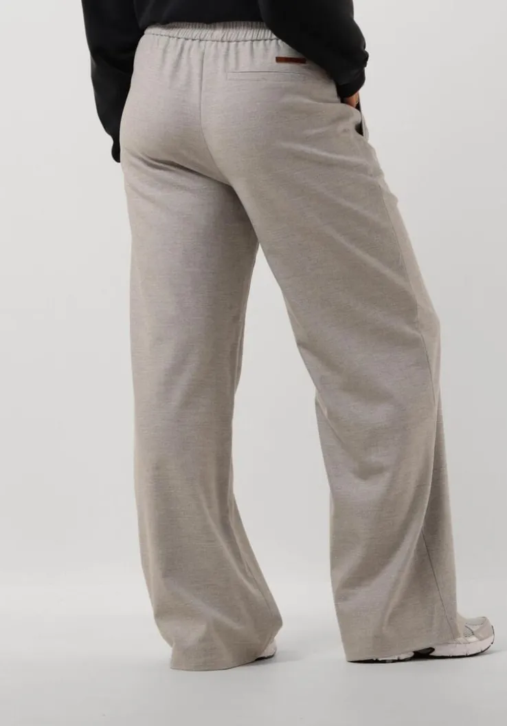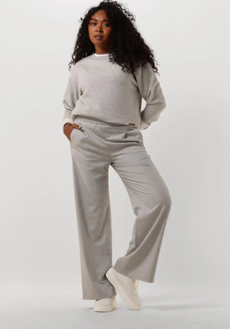 Stap stijlvol de dag in met de lichtgrijze 92-02-SEMENTY wijde broek van MOSCOW. Deze broek biedt ultiem comfort en een trendy uitstraling. Perfect voor een ontspannen dagje shoppen of een gezellige lunch met vriendinnen. Combineer met een elegante blouse en een paar hakken voor een chique look, of draag met een casual T-shirt en sneakers voor een relaxte vibe. De wijde pijpen geven je outfit een speelse twist, terwijl de lichtgrijze kleur moeiteloos te matchen is met diverse tinten.