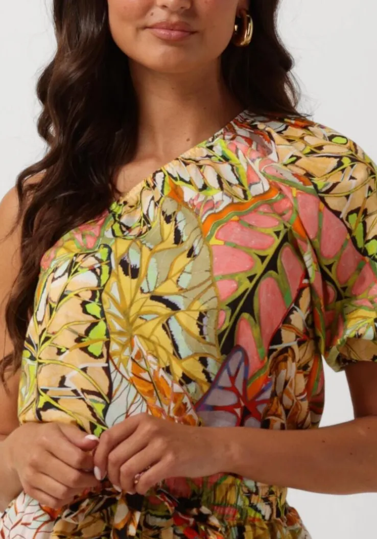 Met de DELIA top van AMAYA AMSTERDAM ben jij helemaal klaar voor de zomer! Deze kleurrijke top is gemaakt van katoen en heeft een vrolijke multi print. Draag de top op een denim short voor een casual look of combineer het met een rok voor een meer geklede outfit. Perfect voor een dagje strand of een gezellige lunch met vriendinnen. Laat jezelf stralen in deze trendy top en geniet van het zomerse gevoel!
