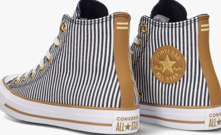 Met de CHUCK TAYLOR ALL STAR HERRINGBONE hoge sneakers van CONVERSE ben jij helemaal on-trend! Het bovenwerk bestaat uit gestreepte stof en heeft camelkleurige accenten, zoals de lijnen in de zool, de merkpatch aan de binnenzijde en de bies op de hiel. Draag ze tijdens een dagje shoppen in de stad of een gezellige lunch met vriendinnen. Combineer de sneakers met een stoere jeans en een basic t-shirt voor een casual look, of met een trendy rokje en blouse voor een meer geklede outfit. Met deze sneakers maak jij elke outfit compleet!
