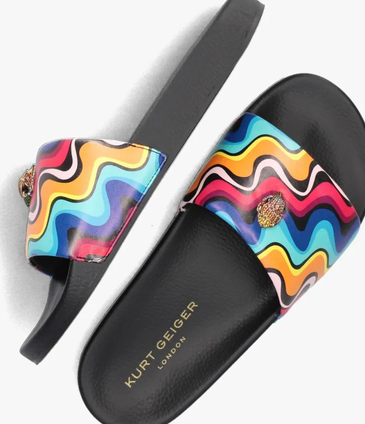 Stap in de zomerse vibe met de MEENA EAGLE MULT slippers van KURT GEIGER LONDON. Deze trendy slippers zijn perfect voor dames die houden van kleur en stijl. Met een multi-kleurig design en een welbekende adelaar zijn deze slippers een echte eyecatcher. Gemaakt van leatherlook materiaal aan de binnen- en buitenkant, bieden ze comfort. Draag ze tijdens een ontspannen dagje op het strand of combineer ze met een zomerse jurk voor een casual-chique look. Deze slippers passen goed bij een zomerse outfit, zoals een luchtige blouse en een denim short. Laat je creativiteit de vrije loop en straal in de MEENA EAGLE MULT slippers!