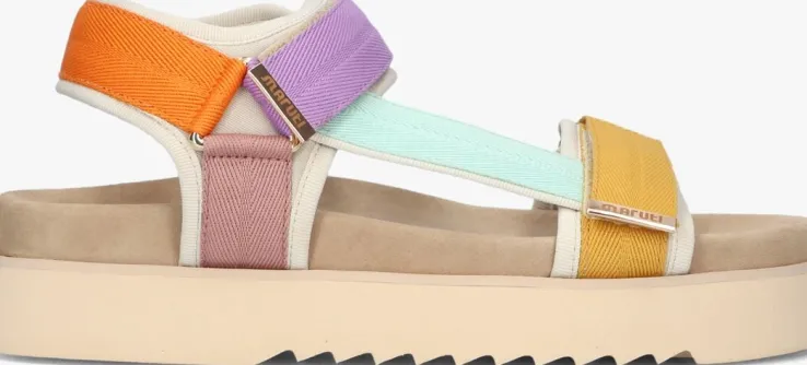 Stap in stijl met de BEAU sandalen van MARUTI! Deze kleurrijke sandalen met klittenbandsluiting zijn perfect voor een dagje strand of een zomerse wandeling. Met zijn leuke gekleurde panenlen is dit een echte zomerse eyecatcher. De klittenbandsluiting heeft aan het uiteinde een metalen embleem met merkreliëf wat een leuk detail geeft aan deze sandaal. Met zijn heerlijk zachte suède voetbed en de rubberen gekartelde zool is de sandaal comfortabel en gripvast. Combineer de BEAU sandalen met een luchtige zomerjurk of een trendy jumpsuit voor een fashionable look. Met deze must-have schoenen ben jij helemaal klaar voor de zomer!