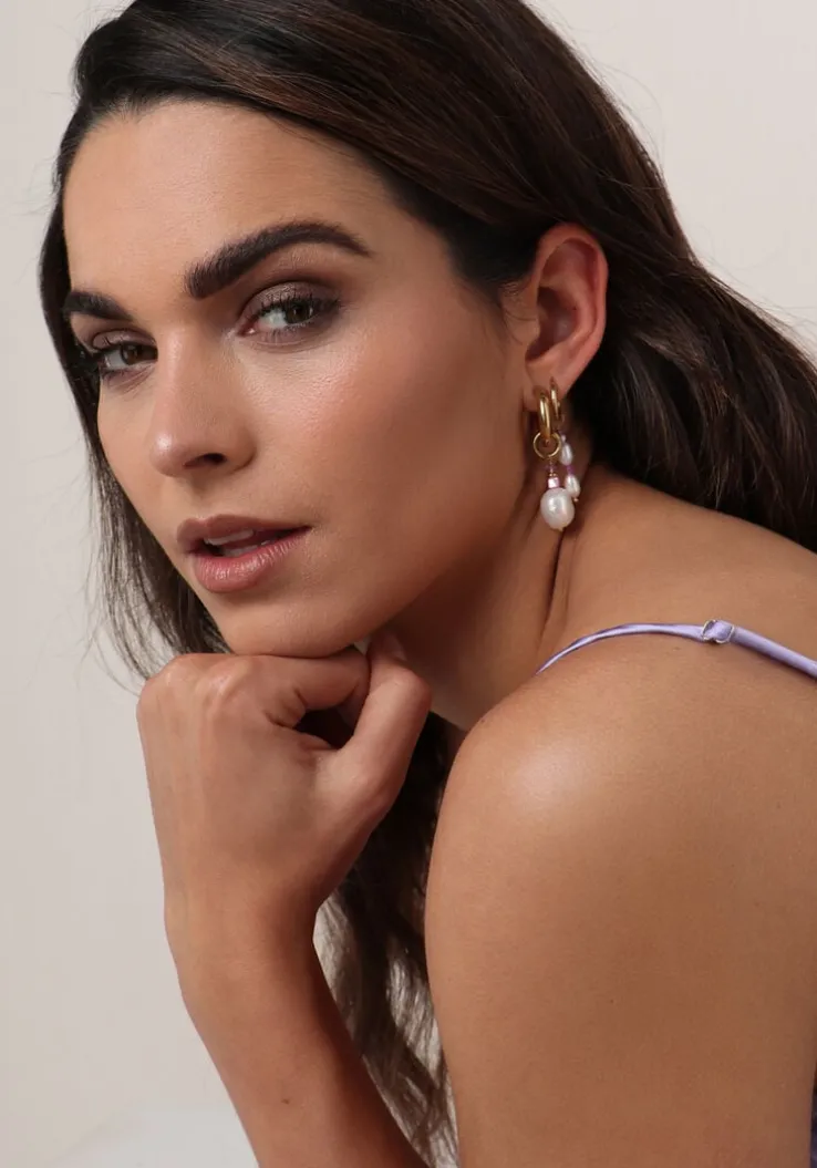Het merkNotre-V staat bekend om kwalitatieve producten met subtiele, luxe details en een vrouwelijke look. Ontwerpen van dit merk zijn tijdloos maar toch altijd volgens de laatste trends en zijn gemaakt van hoogwaardige materialen met bijzondere accenten. Dus ben je op zoek naar een mooi cadeau voor jouw vrouw, moeder, oma, buurvrouw, vriendin of natuurlijk voor jezelf; met deze unieke oorbellen OMSS23-028scoor je punten! Deze goudkleurigeoorbellen zijn gemaakt van roestvrij staal met een laagje goud eromheen, volledig nikkelvrij en beschikt over een hangertje met witte parels en paarse/roze kraaltjes. Dit model is licht van gewicht, supersterk en verkleurt niet. De oorbel heeft een totale lengte van ruim 4 centimeter.
