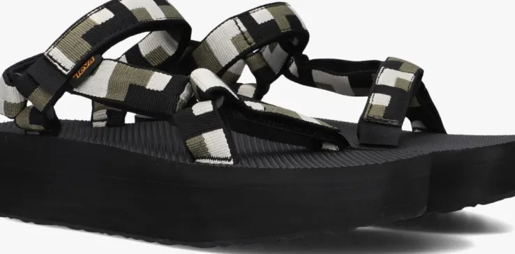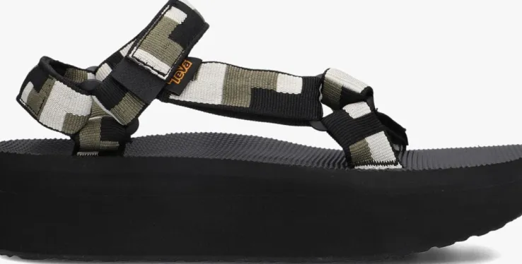 Breng je zomerse outfit naar een hoger niveau met deze te gekke platform sandalenW FLATFORM UNIVERSAL van het merk TEVA. De bandjes van het bovenwerk zijn gemaakt van zwart, groen en wit textiel en door de klittenbandsluiting aan de voorvoet en om de enkel pas je ‘m perfect aan naar je voet. Het voetbed is uitgevoerd in rubber met een fijn reliëf structuur. De plateauzool is zo’n 3,5 cm dik onder de voorvoet en loopt naar achteren toe op naar 4,5 cm en is gemaakt van microrubber. De loopzool van rubber is afgewerkt met een gripvast profiel.