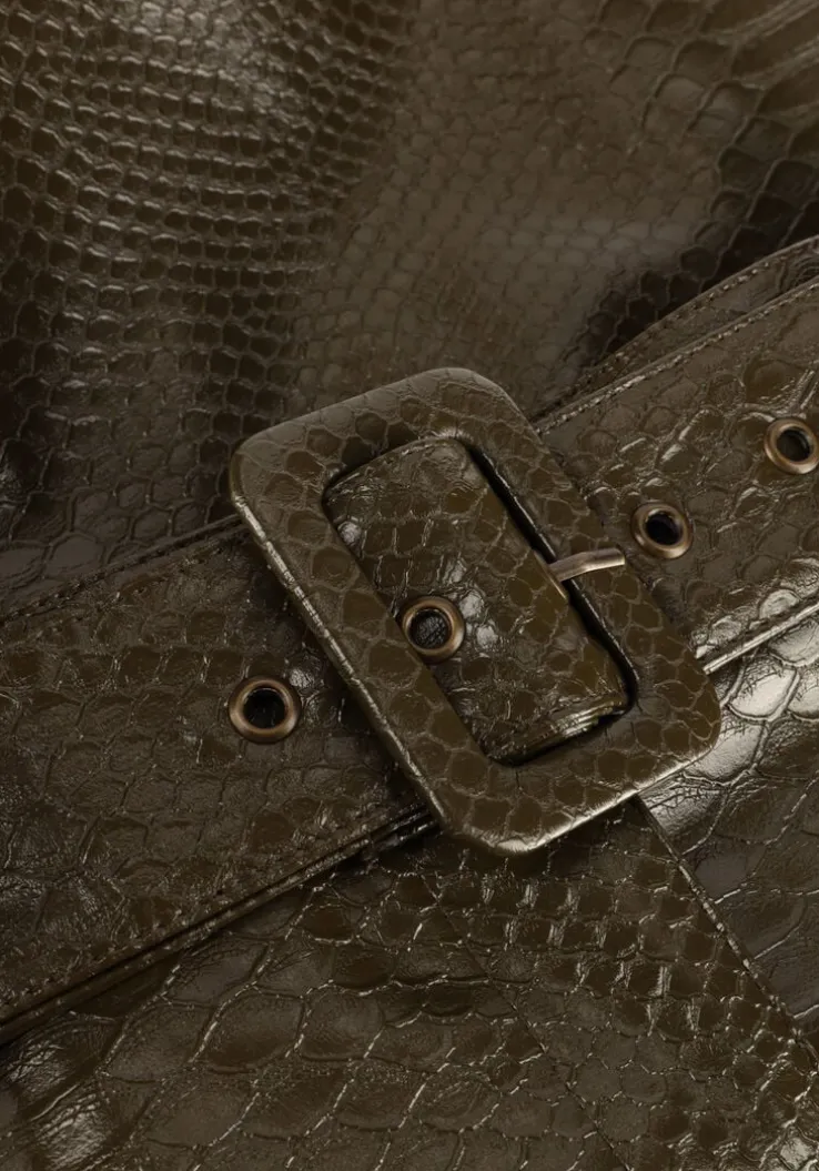 Met deze olijfgroene 15470453-CPC short van TWINSET MILANO ben jij klaar voor de zomer! Deze trendy short heeft een leren slangenprint look met bijpassende riem. De broek heeft leuke uniek details zo als plooien op de voorkant en metalenloge op achterkant. Deze geweldige groene slangenprint short zijn perfect voor dames die houden van stijl en comfort. Draag ze tijdens een ontspannen strandwandeling of een gezellige picknick in het park. Combineer de shorts met een witte blouse voor een frisse en zomerse look. Ook passen ze goed bij een casual T-shirt en sneakers voor een sportieve uitstraling. Met deze short ben jij helemaal klaar voor de warme dagen!