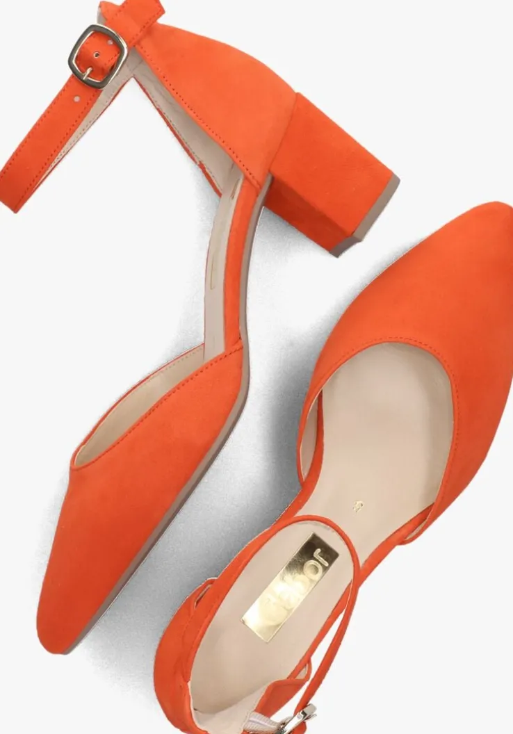 Deze oranje pump 340komt uit de collectie van het merk Gabor. Dit elegante model is uitgevoerd in luxe suède en heeft een bandje met subtiele gesp om de enkel. De pump heeft een voering van leer en een vast voetbed. Het met leren bekledeblokhakje isruim 5 centimeter en zorgt voor een extra vrouwelijke look. Dit model heeft een smallere F-wijdte, een spitseneus en een flexibele rubberen zool. Met recht eenstralende verschijning onder jouw favoriete outfit!