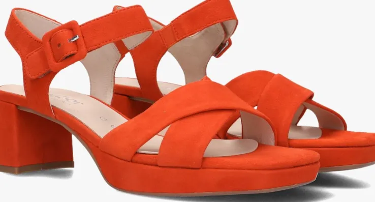 Loop vrolijk de zon tegemoet met deze fijne sandalen 953 uit de collectie van het merk Gabor.Dit oranje model heeft twee gekruisde bandjes van suède over de voorvoet en het suède enkelbandje met klittenbandsluiting is fraai afgewerkt met een siergesp. Het binnenwerk is gevoerd met zacht leer. Opvallend is de suède afwerking aan het blokhakje van 6 centimeter voor een chic geheel. De aangename hakhoogte zorgt ervoor dat jij het heel de dag vol kunt houden op deze beauty’s en met de rubberen loopzool ervaar je veel grip.