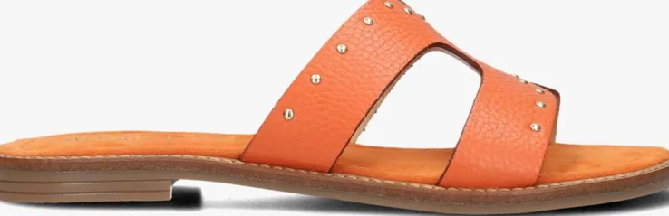 Stap in stijl met deze oranje leren slippers van NOTRE-V met goudkleurige ronde studs. Met zijn comfortabele zool en het trendy design zijn deze slippers perfect voor een dagje strand of een zomerse wandeling. Combineer ze met een luchtige zomerjurk of een casual jeans voor een relaxte look. Deze slippers zijn een must-have voor dames die houden van comfort en fashion. Maak je outfit compleet met deze eyecatchers en geniet van de zomer in stijl.