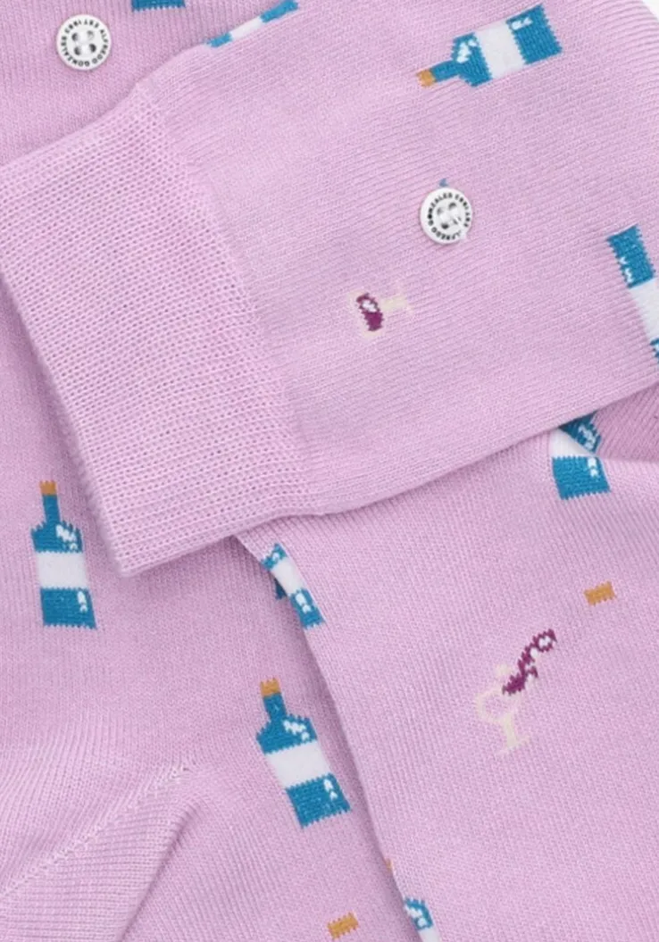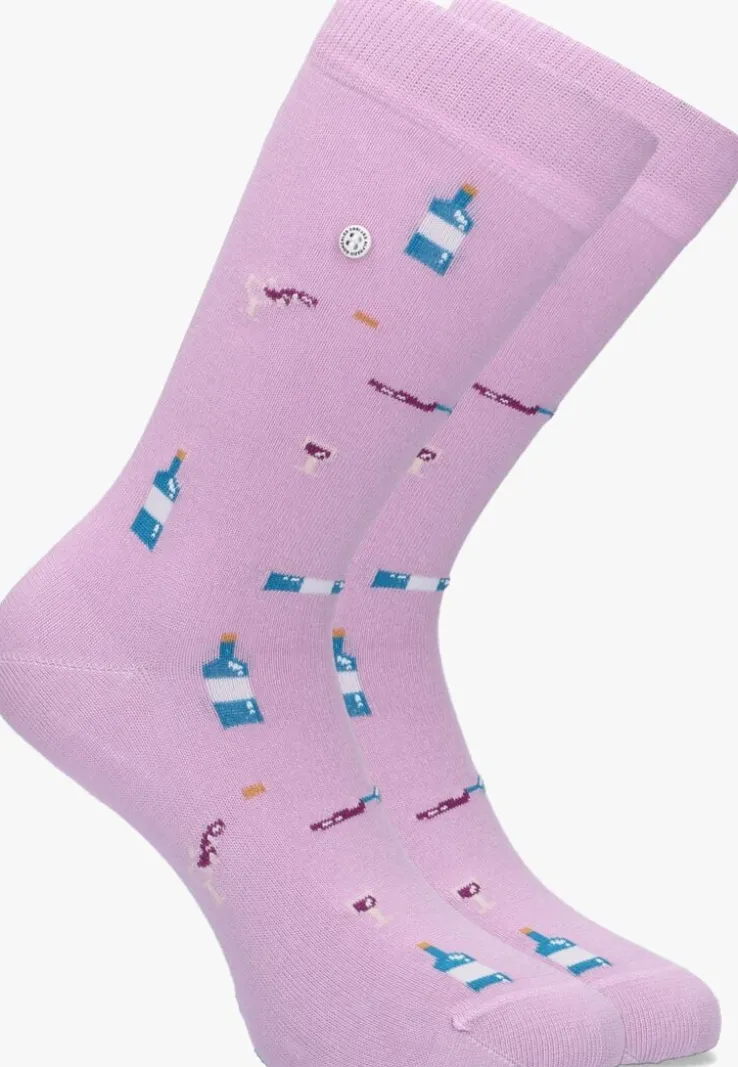 Simpelweg gezegd zijn kwaliteit, stijl en authenciteit de kernwaarden van het merk Alfredo Gonzales. Maar als je naar de mooie producten uit de collectie kijkt zal je zien dat er geen enkele moeite bespaard is gebleven bij het maken van deze creatieve uitingen in de vorm van sokken. De WINE sokken zijn uitgevoerd in paars textiel met een print van verschillende wijnflessen-en glazen. Elk paar Alfredo Gonzales sokken zijn voorzien van een trademark button waardoor ze niet alleen herkenbaar zijn maar wat tevens zorgt voor een prachtig klein detail als toevoeging van elke outfit. Samenstelling van de sokken: 78% katoen, 18% nylon en 4% lycra.