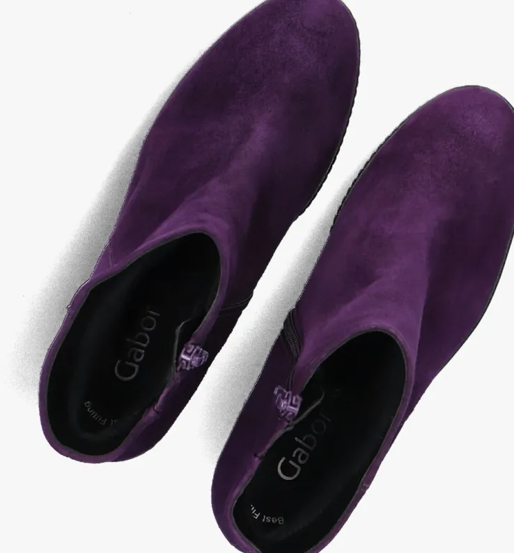 Trendy & comfortabel! Deze paarse enkellaars 780.1 met sleehak uit de Best Fitting-collectie van het merk Gabor heeft een smalle F-wijdte, maar ookeen breder loopvlak op de voorvoet voor extra ruimte op de bal van de voet. Dit model is uitgevoerd in zacht suède meteen binnenvoering van zacht textiel en een vast voetbed. Met de handige ritssluiting aan de binnenkanttrek je ‘m makkelijk aan en uit. Het laarsje heeft een rubberen zool met diepe groeven voor veel grip en de vrouwelijke sleehakzorgt voor een hoog loopcomfort. Hetplateau onder de voorvoet is 2,5 centimeter dik en de hakhoogte is 7 centimeter. De schacht heeft een hoogte van ruim 11 centimeter,gemeten bij maat 37. Match zeonder jouw lievelingsbroek of -jurk en je bent klaar voor een mooie, nieuwe dag!