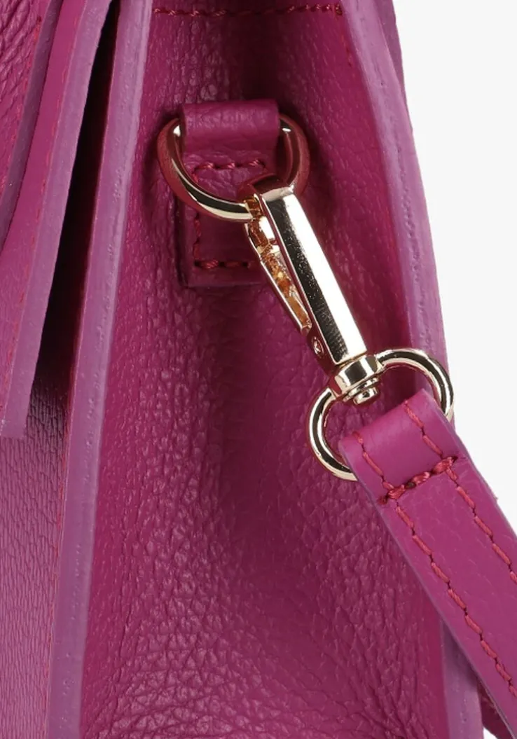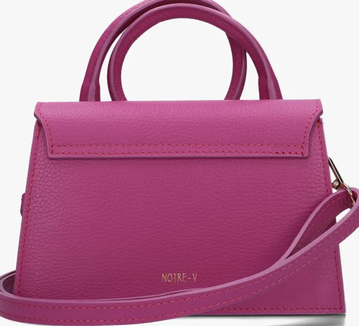 Voeg extra style aan je outfit toe met deze trendy schoudertas MELIS van het merk NOTRE-V. Dit model is uitgevoerd in paars, gestructureerd leer met een leren voering. De tas sluit met een goudkleurige drukknoop en heeft in het hoofdvak een handig steekvakje met merkreliëf. De tas heeft een vast, kort hengsel waarmee je ‘m stijlvol draagt en je kunt ‘m ook als crossbody dragen met de afneembare en verstelbare schouderband. Afmetingen: 19 x 7 x 14 centimeter (lengte x breedte x hoogte).