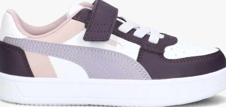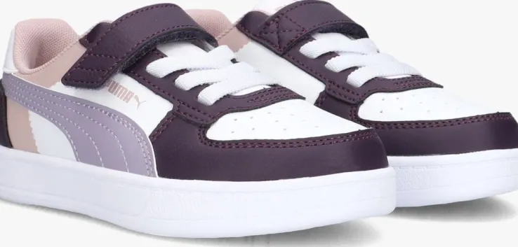 Stap in stijl met de PUMA CAVEN 2.0 lage sneakers voor jongens. Dit model is gemaakt van wit leer met paars en roze leatherlook overlays. Opvallend is roze catlogo en de bekende PUMA-formstrip in het paars. De voering is gemaakt van textiel en het uitneembare voetbed samen met de gewatteerde enkelkraag zorgt voor een extra fijn comfort! De rubberen zool heeft een witte loopzool met gripvast profiel. Combineer ‘m onder een toffe jeans met de pijpen iets opgerold, zodat dezePUMA’slekker opvallen!