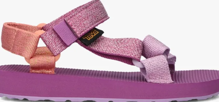 Ontdek de speelse charme van de ORIGINAL UNIVERSAL METALLIC sandalen van TEVA. Perfect voor meisjes die graag avonturen beleven in de lente en zomer. Deze paarse sandalen hebben een ronde neus en een comfortabele textiele binnen- en buitenkant. De klittenbandsluiting zorgt voor een makkelijke instap, terwijl de rubberen zool grip biedt tijdens het spelen in het park of een picknick in de tuin. Combineer ze met een luchtig zomerjurkje of een vrolijke short voor een frisse, zomerse look. Laat je creativiteit de vrije loop en geniet van zonnige dagen in stijl!