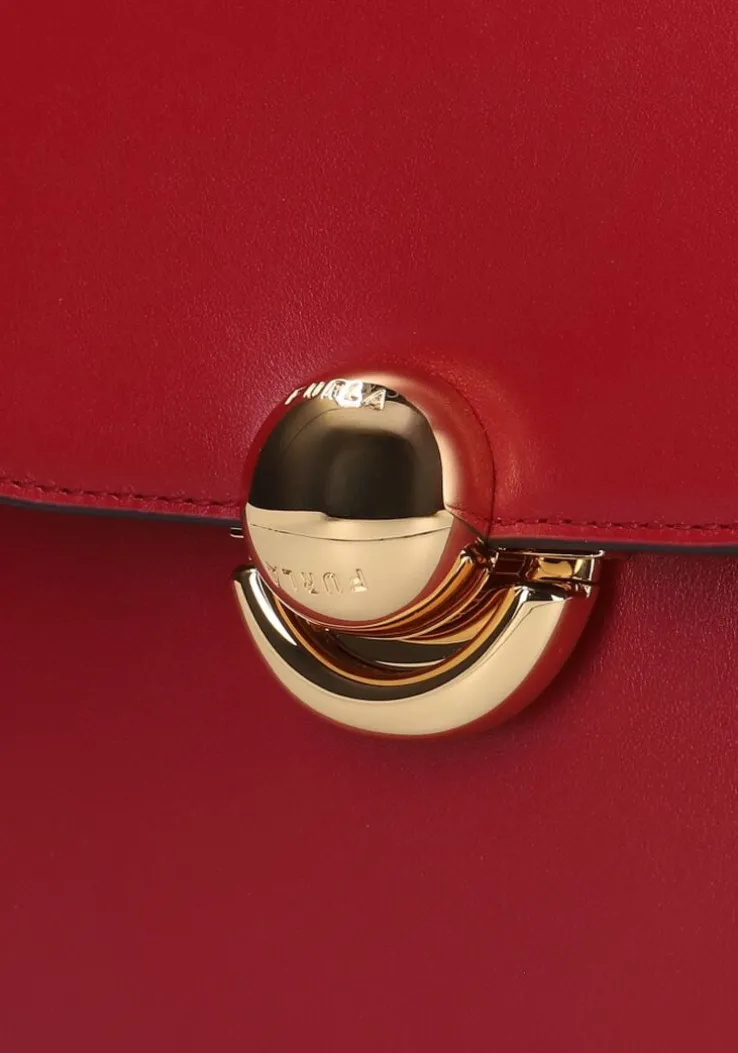 Ontdek de SFERA S CROSSBODY ROUND, een stijlvolle schoudertas voor dames die perfect is voor de herfst- en wintermaanden. Gemaakt van leer aan de buitenkant en een zachte textiel- en suède binnenkant, biedt deze tas zowel stijl als comfort. De levendige rode kleur van deze Furla tas voegt een vleugje elegantie toe aan elke outfit. Draag ‘m tijdens een gezellige stadswandeling of een avondje uit. Combineer met een warme wollen jas en je favoriete laarzen voor een complete look. Deze tas is de ideale metgezel voor al je herfst- en winteravonturen.