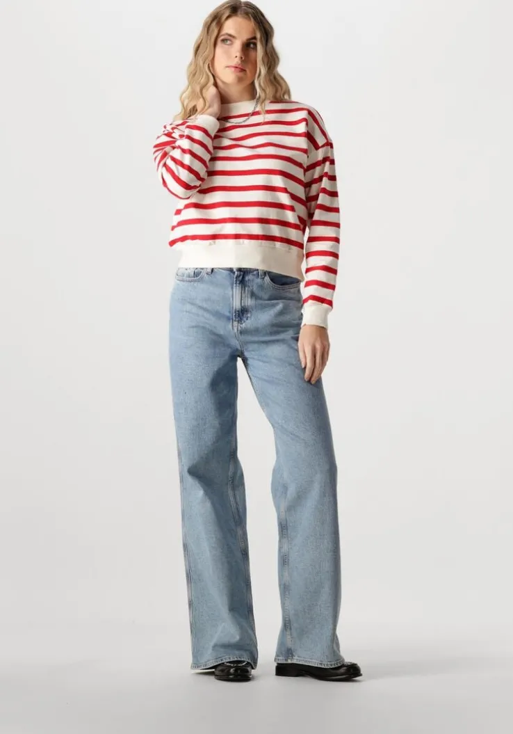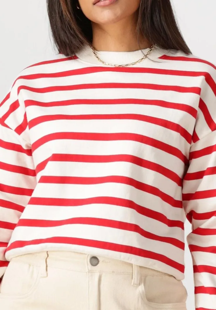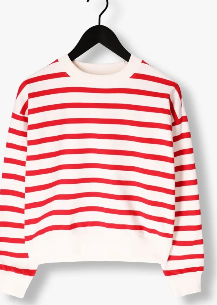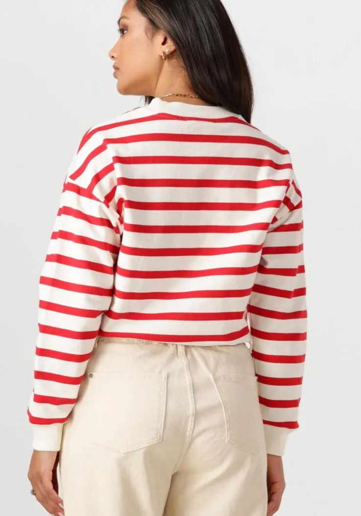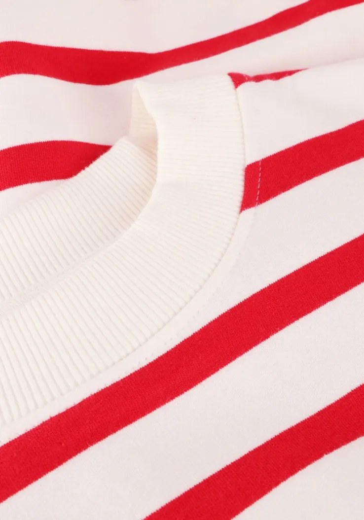 Voeg een vleugje kleur toe aan je garderobe met de Estella Sweat van Minus. Deze rood met wit gestreepte trui is perfect voor dames die houden van comfort en stijl. Ideaal voor een ontspannen dagje thuis of een gezellige brunch met vriendinnen. De zachte stof en losse pasvorm zorgen voor een heerlijk draagcomfort. Combineer de Estella Sweat moeiteloos met een strakke jeans of een stijlvolle rok voor een complete look. De opvallende rode kleur maakt elke outfit net dat beetje specialer. Laat je inspireren door de veelzijdigheid van deze trui en geniet van de complimenten die je zult ontvangen.