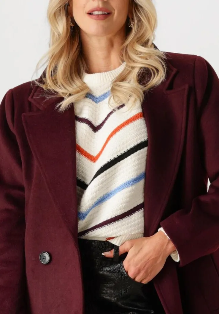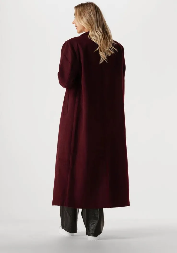 Maak kennis met de X NINA – MEGAN mantel in de stijlvolle kleur aubergine. Deze elegante mantel uit de Omoda Atelier collectie in samenwerking met Nina Warink is perfect voor dames die houden van een comfortabele, stijlvolle, tijdloze en chique look. Combineer de mantel met een zwarte jeans en een paar chunky sneakers voor een casual outfit. De diepe aubergine tint geeft je garderobe een luxe touch en past perfect bij zowel casual als formele gelegenheden.