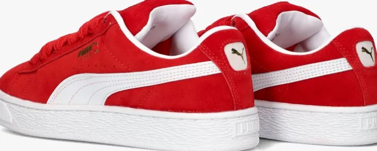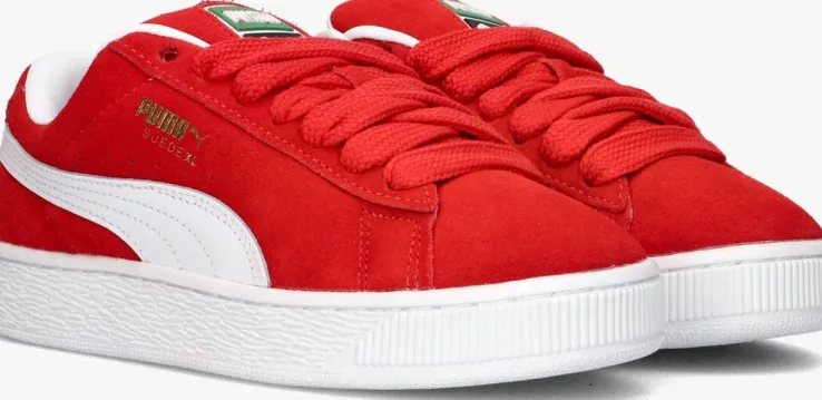 Ontdek de SUEDE XL JR sneakers, perfect voor avontuurlijke jongens. Deze lage sneakers in opvallend rood suède geven elke outfit een stoere touch. Dankzij de ronde neus en het comfortabele, uitneembare voetbed loop je de hele dag met gemak. De binnenkant van textiel en leatherlook zorgt voor een zachte pasvorm, terwijl de rubberen zool grip biedt tijdens het rennen en spelen. Combineer ze met een casual jeans of een sportieve short voor een coole look. Met de vetersluiting pas je ze eenvoudig aan voor de perfecte fit. Ideaal voor schooldagen of een middag in het park.