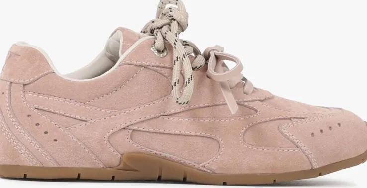 beige hub lage sneakers grid-w