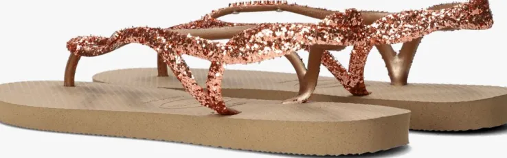 Een absolute zomer must-have van het Braziliaanse merk Havaianas; dat is deze trendy LUNA PREMIUM II slipper. Dit feminine exemplaar heeft smalle bandjes die afgewerkt zijn met roze glitters voor een opvallende look. Ook is op het bandje een metalen merkembleem te vinden en heeft hij een enkelbandje, waardoor je slipper altijd goed blijft zitten en je klaar bent om over de boulevard of door de stad te wandelen. De slipper is comfortabel, duurzaam, lichtgewicht, anti-slip, hittebestendig én waterresistant. Wat wil je nog meer? Dat de zon schijnt en je ze de hele dag kan dragen natuurlijk!