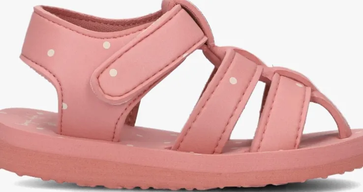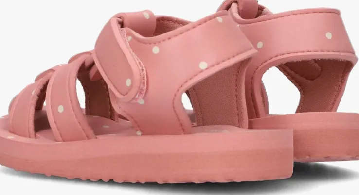 Deze lichte sandaaltjes SABLE van KONGES SLOJD hebben een roze kleur met stippen en bestaan uit schuim. Op de wreef lopen drie bandjes en het enkelbandje is voorzien van een klittenbandsluiting, zodat je ‘m super gemakkelijk aan- en uittrekt. De bandjes zijn gevoerd met polyester en het voetbedje is heerlijk zacht. De loopzool heeft een reliëf van de zee met een walvis, zonnetje en wolkje en zorgt voor wat grip. Dit sandaaltje is ideaal voor op vakantie!