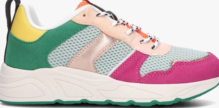 Met de ZOË lage sneakers van OMODA ben je helemaal klaar om de wereld te veroveren! De schoen bestaat onder andere uit lichtblauw en neon oranje mesh textiel met panelen van roze, paars en groene suèdelook met verschillende accenten, zoals de brons look panelen, de gele lederlook hielcap, de zwart met wit gekleurde veters, het roze lak en suède look op de veterklep en de zwarte lederlook aantreklus. Het binnenwerk heeft een textiel voering met een lederlook, uitneembaar voetbed. De rubberen zool met stoere vormen zorgt voor een coole look en het groene gripvaste profiel in de loopzool geeft je bij iedere uitdaging een goede stabiliteit en grip!