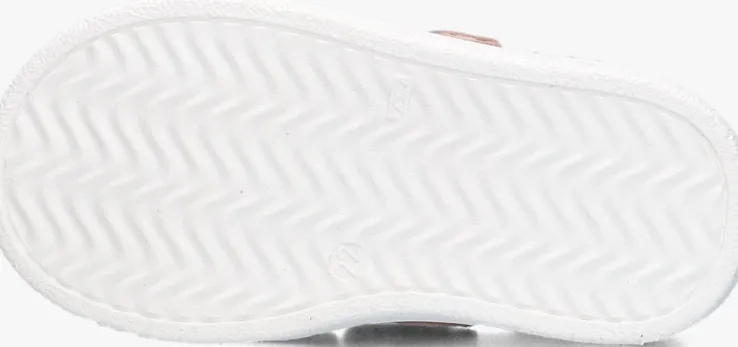 Deze lage sneaker F1041 van PINOCCHIO is gemaakt van wit leer en is voorzien van roze en goudkleurig leer op de klittenbandsluitingen en hielcap. Op de tong bevindt zich een subtiel merkreliëf en de zijkant heeft perforaties. De voering is gemaakt van leer en het voetbed is uitneembaar. De rubberen zool met zigzag profiel heeft een goede grip.