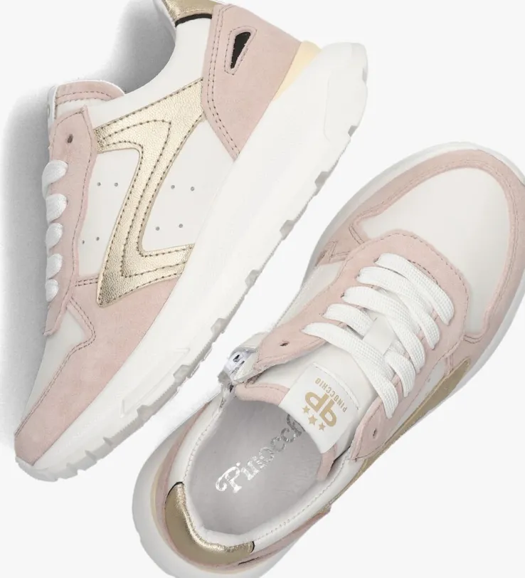 Deze lichtroze lage sneakers P1572 van PINOCCHIO zijn perfect voor meisjes die op zoek zijn naar comfort en stijl. Het bovenwerk bestaat uit wit leer met overlays van lichtroze suède en heeft zwarte accenten. De hielcap en de vorm op de zijkant bestaat uit goudkleurig leer. Met een uitneembaar voetbed en een zachte leren binnenkant zorgen deze sneakers voor ultiem draagcomfort. De rits aan de zijkant maakt het gemakkelijk om ze aan en uit te trekken en met de veters maak je ze strakker. De rubberen zool zorgt voor goede grip en stabiliteit. Combineer deze sneakers met een schattig jurkje of een stoere jeans voor een trendy look. Of je nu naar school gaat of gaat buitenspelen met dit model ben je altijd fashionable onderweg.