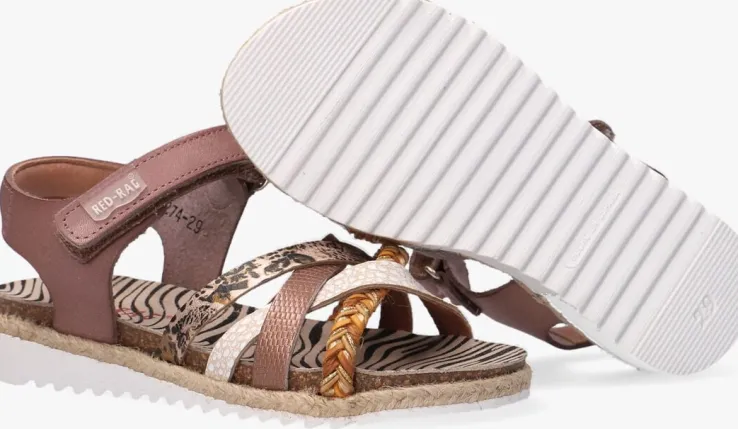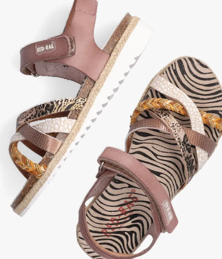 Bij het zien van deze sandalen 19274van het merk RED-RAG krijgen wij meteen zin in die heerlijke zomerse dagen! Het bandje om de enkel is gemaakt van oudroze leer en de kruislingse bandjes om de voet hebben diverse afwerkingen. Zo is er een bandje gemaakt van jute met een mooivlechtwerk, een roze metallic bandje met panterprint, eentwee bandjes met verschillende structuren. Extra leuk is het suède voetbed met zebraprint en het jute accent in de zool. Het binnenwerk heeft een suède afwerking en zorgt voor een comfortabel gevoel. De witte rubberen zool zorgt voor een sportieve look en een gripvast profiel.