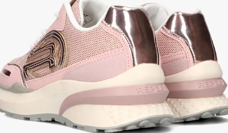 Nu kunnen de jongste onder ons ook meedoen met de dadsneaker trend! Dit veelzijdige lage sneaker model ATHENA JR-1 komt uit de collectie van het merk REPLAY. Dit model is uitgevoerd in roze mesh textiel met roze, leatherlook overlays. Extra tof zijn de metallic kenmerken zoals de hielcap, het logo op de zijkant en de inzetten bij de voorvoet. Ook zijn er glitters verwerkt in de stof en is het merklabel gemaakt van glitters. De roze inzet in de zool met merkreliëf zorgt voor een goede ondersteuning aan de hiel. De voering is gemaakt van mesh textiel en heeft een uitneembaar voetbed. De grove zool met sterrenreliëf aan de hiel en hetgripvast profiel is helemaal volgens de laatste trends. Maak met dit item een statement en show jouw unieke stijl!