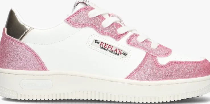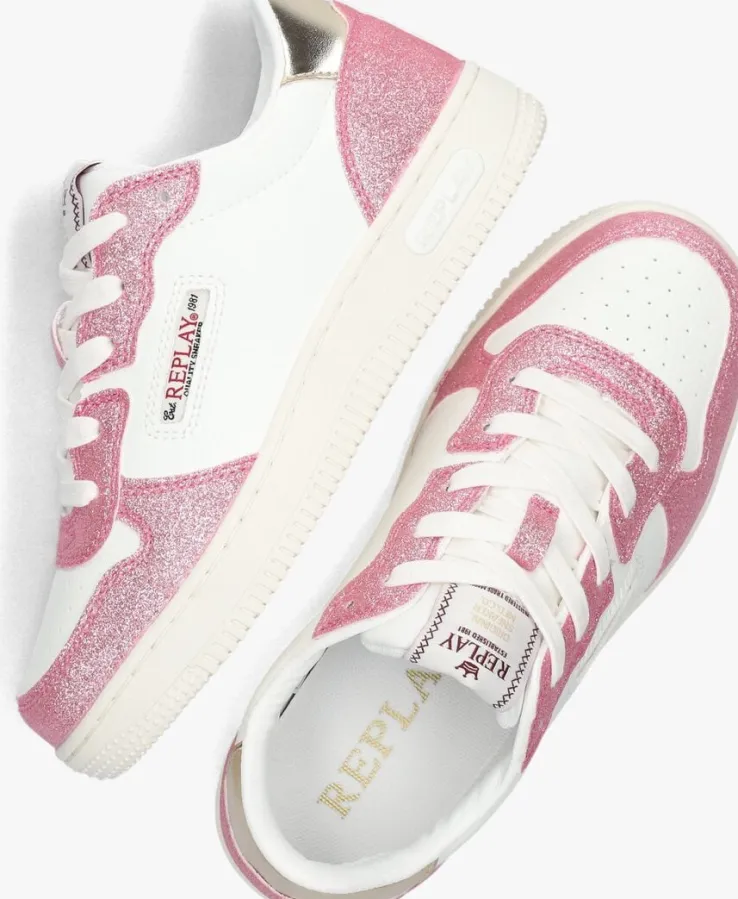 Hey meiden! Deze EPIC JR 7 sneakers van REPLAY zijn echt te gek! Ze zijn perfect voor jullie, stoere fashionista’s. De sneakers zijn gemaakt van wit leatherlook met panelen van roze glitters. Opvallend zijn de merkemblemen op de zijkant, tong en zoolrand. De hielcap heeft een goudkleurige kleur. Met deze lage sneakers kunnen jullie lekker rondrennen en spelen. Ze zijn supercomfortabel en zien er ook nog eens fantastisch uit. Combineer ze met een stoere jeans en een leuk T-shirt voor een trendy look. Of draag ze onder een schattig jurkje voor een speelse twist.
