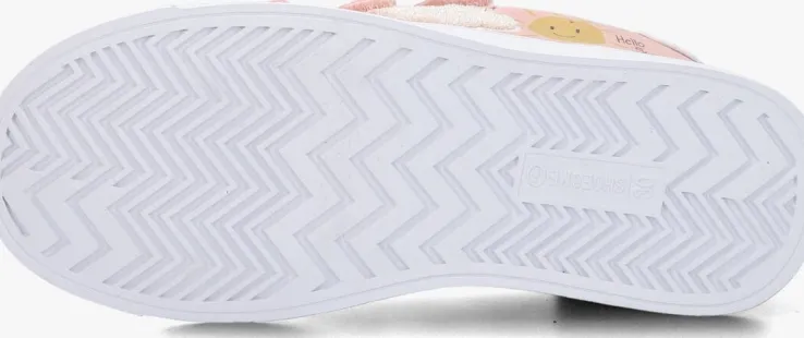 SHOESME is hét merk die weet waar je kinderen mee kunt verrassen. Dat doen ze door hun vrolijke kleurtjes, printjes en door de laatste trends te volgen. Maar zij weten ook precies waar je de ouders blij mee maakt. En dat is natuurlijk een goed voetbed, een goede ondersteuning van de voet én heel belangrijk, dat de schoentjes tegen een stootje kunnen. Deze leuke lage sneaker SH23S001 is zo’n voorbeeld hiervan! De buitenkant is gemaakt van roze nubuck leermet een witte hielcap en een lief zonnetje en wolkje op de zijkant. Dit model heeft drie handige klittenbandsluitingen waarmee je veel gemak ervaart bij het aan- en uittrekken en je ze gemakkelijk passend maakt naar het voetje van jouw kind. De neus is voorzien vaneen witte rubberen stootneus, zo blijven de schoentjes langer mooi, ook als ze nog vaak op de grond spelen. Het binnenwerk is uitgevoerd in leer met een uitneembaar dempend voetbed.De rubberen zool met gripvast profiel is stevig en tegelijkertijd ook soepel zodat de voet goed kan afwikkelen.