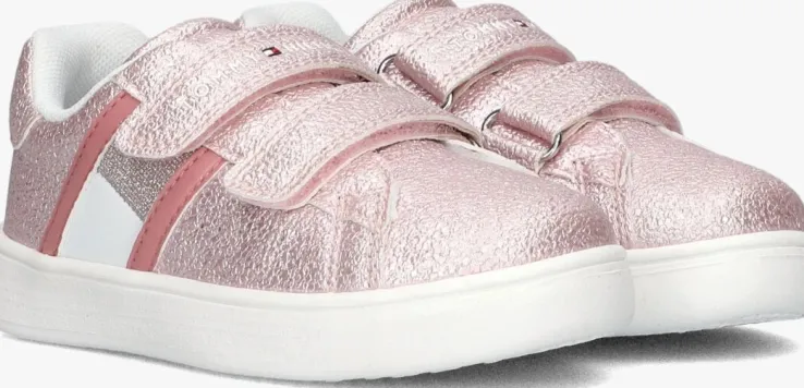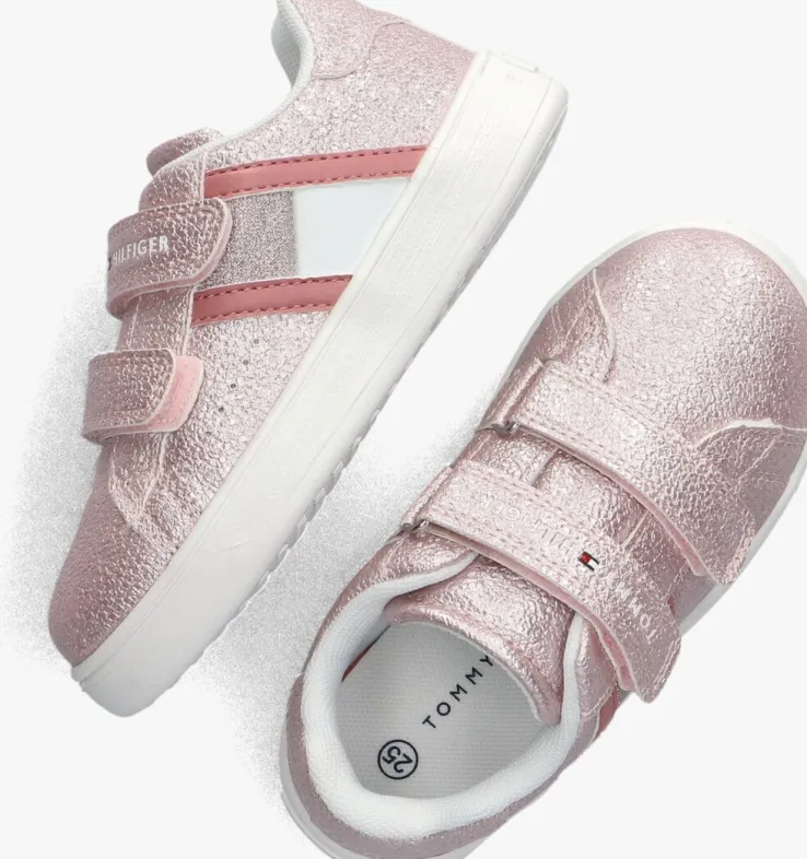 Deze roze sneakers van TOMMY HILFIGER zijn perfect voor meisjes die houden van stijl en comfort. Met de buitenkant van structuur leatherlook en klittenbandsluiting zijn ze gemakkelijk aan en uit te trekken. Ook is de bovenkant afgewerkt met een subtiele glitter. De rubberen zool zorgt voor een goede grip tijdens het spelen en rennen. De zijkant is voorzien van een merklogo. De sneakers passen goed bij een casual outfit, zoals een jeans en een T-shirt. Of combineer ze met een schattig jurkje voor een speelse look. Of je nu naar school gaat of een dagje uit, met deze lage sneakers ben je altijd trendy en comfortabel gekleed.