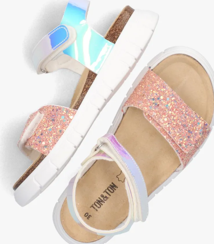 Stap in de zomerse vibe met de YLWA sandalen van TON & TON! Deze roze sandalen zijn perfect voor meisjes die houden van een vrolijke en speelse look. Deze sandalen zijn gemaakt van multicolor leatherlook en heeft een paneel van roze glitters. De sandalen zijn gemakkelijk te verstellen doordat er aan de voorvoet klittenband zit en aan de bovenkant. De voering is gemaakt van leer en textiel waardoor het zacht aanvoelt op de huid. De rubberenzool met een kleine verhoging heeft een gripvast profiel waardoor je heel de dag heerlijk kunt spelen. Combineer ze met een luchtige zomerjurk of een trendy short en je bent helemaal klaar voor een dagje strand of een gezellige picknick in het park. Met deze sandalen ben je altijd on-trend!