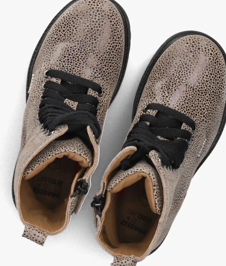 Maak kennis met de LILLY veterboots van BRAQEEZ, speciaal voor meisjes die houden van stijl en comfort. Deze taupe boots van suède zijn perfect voor een avontuurlijke dag in het park of een gezellige middag in de stad. De stevige veters, de zwarte dots en de robuuste zool zorgen voor een toffe uitstraling. Combineer ze met een stoere jeans en een warme trui voor een casual look, of draag ze met een schattig jurkje en een legging voor een speelse touch.
