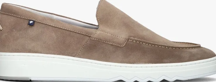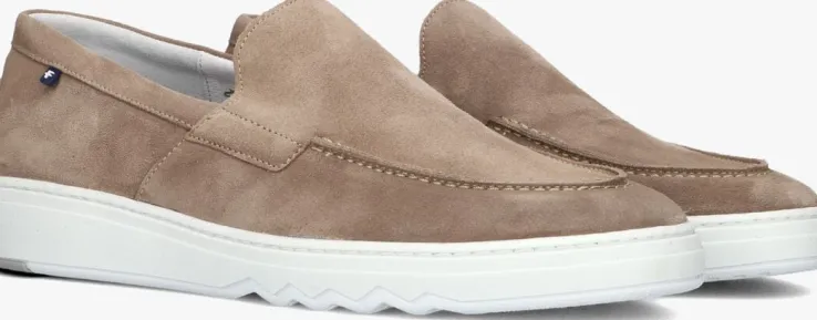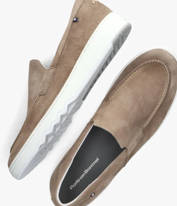 Uit de collectie van het Nederlandse merk Floris van Bommel is deze taupe kleurige loafermet stijlvolle look en de stoere zool. Deze loafer heeft een bovenwerk van suède met een opstaande neusnaad, dubbele stiksels en een klein leder vlaglogo op de zijkant van de enkelkraag. Het binnenwerk is uitgevoerd in leer met een uitneembaar voetbed en een suède hielinzet voor extra comfort aan de hiel. De dikke rubberen zool heeft een stevig profiel voor superveel grip op iedere ondergrond. Combineer hem onder een nette pantalon of casual onder een jeans.