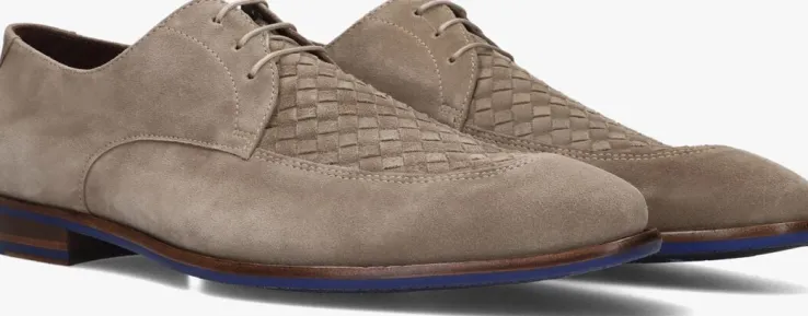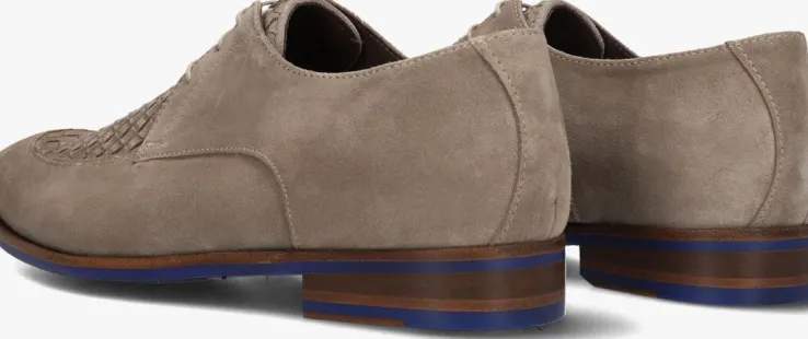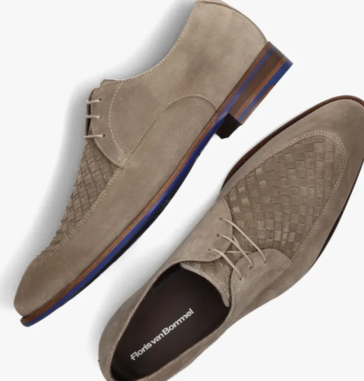 Stap stijlvol de deur uit met deze FLORIS VAN BOMMEL SFM-30462 nette schoenen voor heren. De taupe kleur geeft een trendy touch aan je outfit. De schoen bestaat uit suède en heeft op de bovenzijde een gevlochten patroon. Met deze schoenen kun je moeiteloos naar kantoor of een chique feest. De zool is voorzien van een cobaltblauwe streep. Combineer ze met een strakke pantalon en een klassiek overhemd voor een formele look.