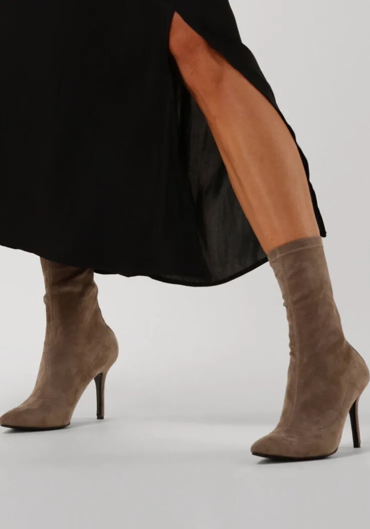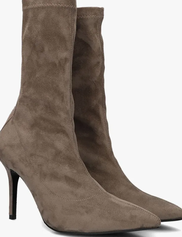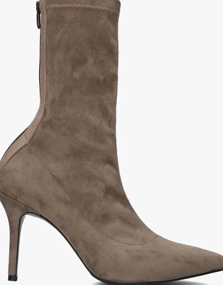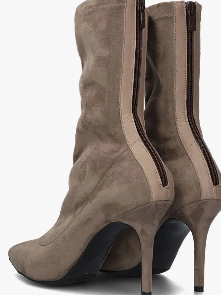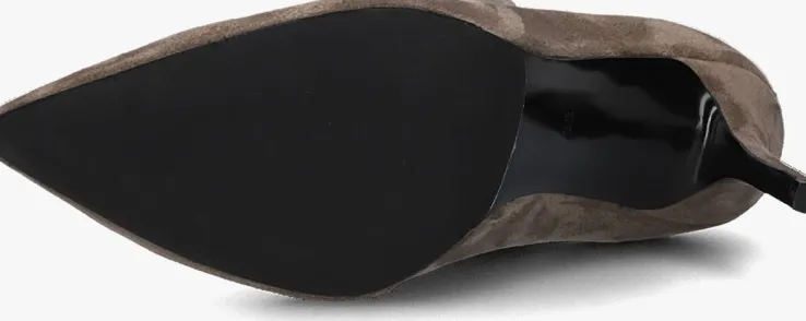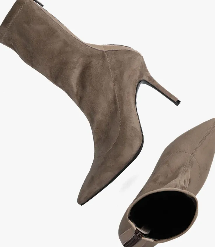 De elegante Italiaanse ontwerpen van het merk NOTRE-V zijn er voor de verfijnde vrouw die er graag effortless chic uit wil zien. De producten zijn gemaakt van luxe materialen met subtiele accenten en een knipoog naar de laatste trends.Dit taupekleurige enkellaarsje 101 kenmerkt zich door de mooie suèdelook buitenkant met een puntige neus en heeft een bijpassende naaldhak van 9 centimeter hoog.Door de soepele schacht en de ritssluiting met lederlook bies aan de achterzijde heb je een gemakkelijke instap en sluit hij mooi om je enkel aan. Het binnenwerk van textiel met het leren, vaste voetbed voelt comfortabelaan. De schacht heeft een hoogte van 21 centimeter, gemeten bij maat 38 en de loopzool is uitgevoerd in rubber in combinatie met een kunststof haktip. Onder welk outfit laat jij dit laarsje mooi uitkomen?