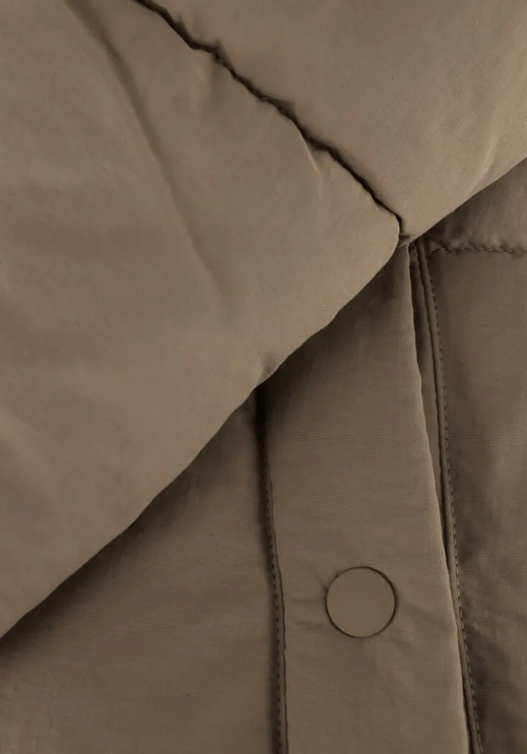 Trotseer de kou in stijl met de taupekleurige, gewatteerde jas NV-EDNA van NOTRE-V. Deze jas biedt ultiem comfort en warmte tijdens een winterse wandeling of een dagje shoppen in de stad. De elegante kleur en het puffy design maakt het eenvoudig om te combineren met zowel een casual jeans als een chique rok. De gewatteerde structuur zorgt voor een moderne look en houdt je heerlijk warm. Perfect voor dames die mode en functionaliteit willen combineren. Voeg een paar stoere laarzen of stijlvolle sneakers toe en je bent klaar om de dag te beginnen.