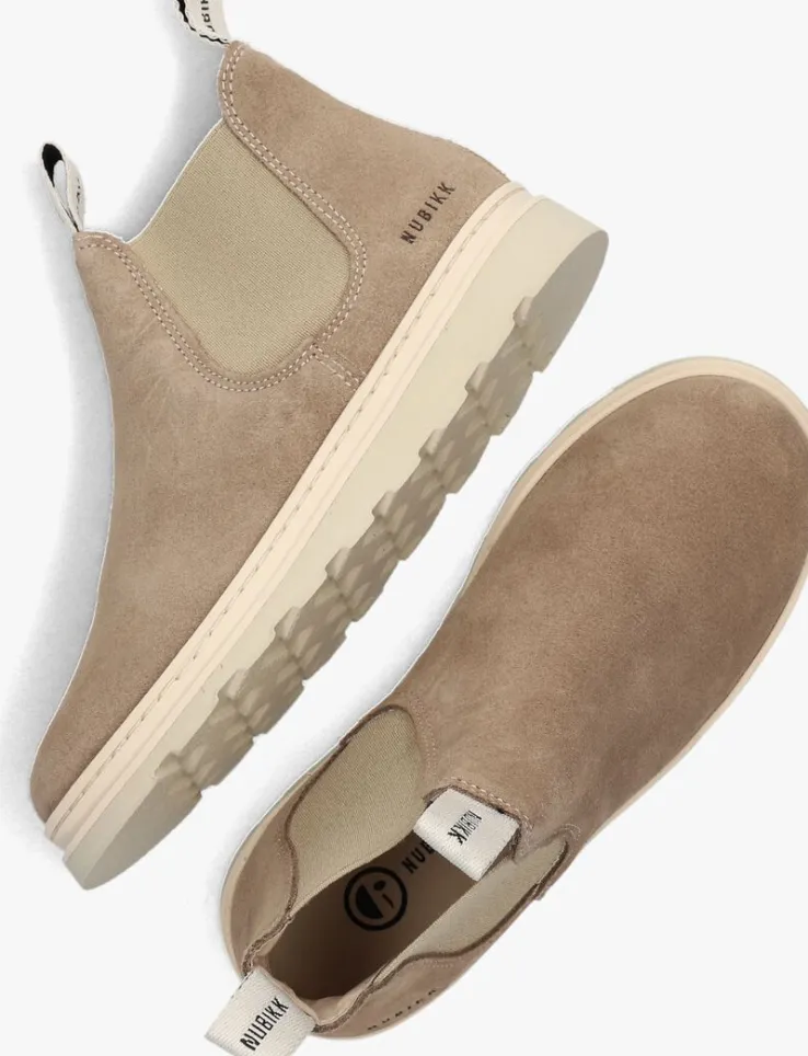 Deze toffe beige chelsea boots JONAH RAI JR van het merk NUBIKK hebben een vernieuwd design, geïnspireerd op klassieke chelsea boots maar voorzien van hedendaagse elementen zoals de chunky zool enaantreklussen aan de schacht. Daarnaast heeft dit model comfortabele elastische zijpanelen eneen grote. Dit bijzonder comfortabele model is uitgevoerd in hoogwaardig suède en heeft een binnenwerk van leer met een uitneembaar voetbed. De extra dikke zool is licht van gewicht, heeft een grof profiel én geeft de schoen een cool tintje. De zool is bijna 2 centimeter dik onder de voorvoet en heeft een hakhoogte van 3 centimeter. Draag ‘m dressed casual met een jeans.