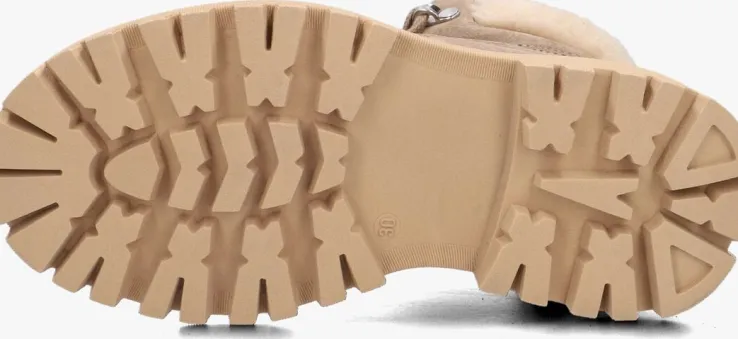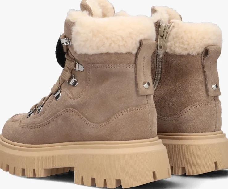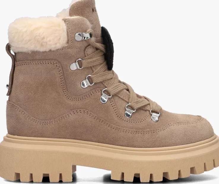 Met deze stoere veterboots FAE MONTAGNE JR van NUBIKK zal je kleine meid stralen! Dit grove model heeft een bovenwerk van taupekleurig suède met golvende afwerkingen. Dit model is extra tof door de opvallende veterlusjes, het zwarte merkreliëf op de tong, de aantreklus op de hiel en de roze smiley patch op de veter. Je trekt dit model razendsnel aan door de ritssluiting aan de binnenzijde. Je ervaart een heerlijk comfort dankzij de gevoerde enkelkraag, de binnenvoering van textiel en het uitneembare voetbed van leer. De chunky zool van 4,5 centimeter hoogte maakt het plaatje compleet en biedt een uitstekende grip door de diepe groeven in de loopzool!