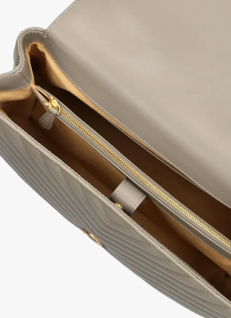 Ontdek de stijlvolle taupe handtas LOVE LADY PUFF BIG CL SHEEP van PINKO. Deze tas is perfect voor dames die houden van een elegante en tijdloze look. De tas heeft prachtige goudkleurige details, zoals de Pinko logo buggle met magneetsluiting. De binnenkant is afgewerkt met een combinatie van textiel en leer, wat zorgt voor een luxe uitstraling en duurzaamheid. Gebruik deze tas voor een dagje shoppen of een avondje uit. Combineer hem moeiteloos met een chique jurk of een casual jeans en blouse. De subtiele taupe kleur maakt het een veelzijdige accessoire dat bij elke outfit past. Voeg een vleugje klasse toe aan je garderobe met deze prachtige handtas.