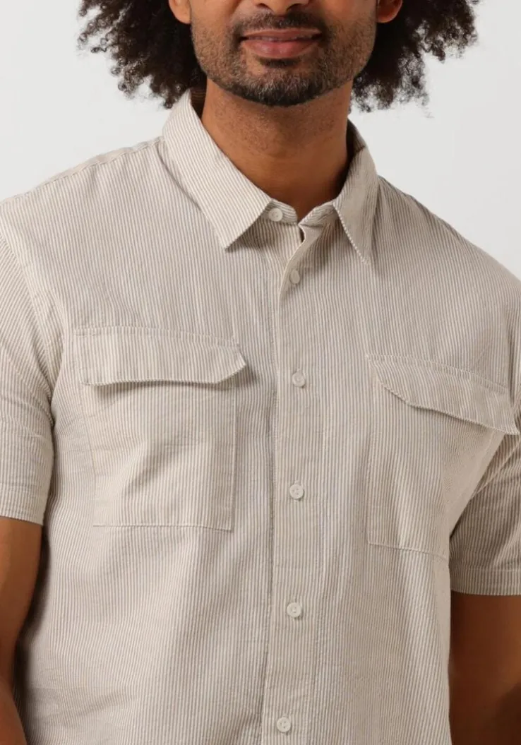 Met het SEERSUCKER SHORTSLEEVE SHIRT WITH CHEST POCKETS van PURE PATH ben jij helemaal on-trend deze zomer. Dit casual overhemd in de kleur taupe is perfect voor een dagje strand of een zomerse barbecue met vrienden. Combineer het met een lichte chino en sneakers voor een relaxte, maar stijlvolle look. Dit overhemd past ook goed bij een denim short en slippers voor een meer laid-back vibe. Met dit shirt ben jij klaar voor elke zomerse gelegenheid!