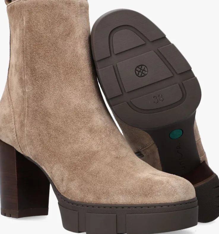 Ga voor een opvallendelook met deze stoereenkellaars KUBELvanhet merkUNISA! Dit model is uitgevoerd in taupekleurig suède en heeft toffe kenmerken die voor een hoog comfort zorgenzoals de geblokte rubberen plateau zool, de aansluitende schachten de stoere blokhak. Daarnaast zorgtde slanke vormgeving en de blokhakvoor een mooie vrouwelijke uitstraling.De schoen heeft een binnenwerk van zacht leer en een vast dempend voetbed. De dikke zool is bijna 3 centimeter dik onder de voorvoet en zorgt samen met de hoge blokhak van 9 centimeter hoog voor een prettig loopcomfort en een stoere look. De schacht met doorgestikte afwerking aan de achterzijde heeft een hoogte van bijna 15 centimeter en sluit mooi aan op de enkel. Combineer ‘m bij je tofste jurkje of draag ‘m stoer onder een jeans!
