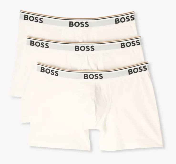 In deze verpakking zitten drie boxershorts, gemaakt van katoen met de merkkleuren van BOSS aan de bovenzijde.