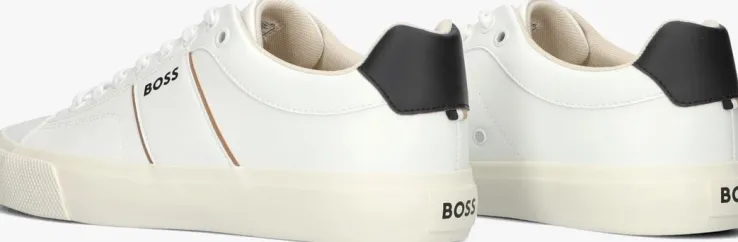 Stap in stijl met de BOSS AIDEN_TENN lage sneakers voor heren. Dit model is uitgevoerd in wit leatherlook en heeft toffe details zoals, het merkreliëf aan de zijkant, cognac kleurige strepen aan de zijkant, de zwarte hielcap en het merklogo op de tong. De binnenvoering is van textiel en heeft een hielaanzet van suéde. Op het vaste voetbed is het merklogo terug te vinden in zwarte letters. De zool is gemaakt van rubber en heeft een stootrand met gripprofiel wat ook weer terug te vinden is aan de onderkant van de zool. Of je nu gaat voor een wandeling in het park of een drankje met vrienden deze sneakers zijn altijd geschikt!