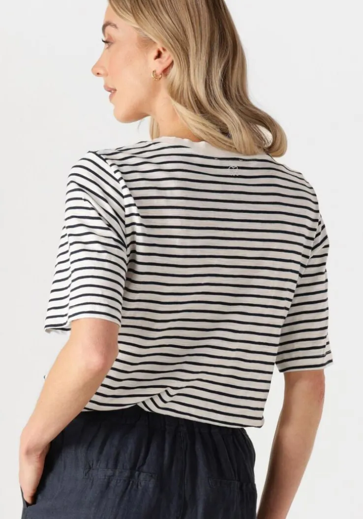 Ontdek de veelzijdigheid van de CC HEART SILLA STRIPE top. Deze zwart/wit gestreepte top is perfect voor dames die houden van een casual en stijlvolle look. De buitenkant van katoen voelt heerlijk zacht aan, terwijl de katoenen binnenkant zorgt voor extra comfort. Ideaal voor een ontspannen dagje shoppen of een gezellige lunch met vriendinnen. Combineer deze top moeiteloos met een lichte jeans of een elegante witte rok voor een frisse, zomerse uitstraling. De subtiele strepen geven je outfit net dat beetje extra flair. Voeg deze must-have toe aan je garderobe en geniet van de perfecte mix van stijl en comfort.