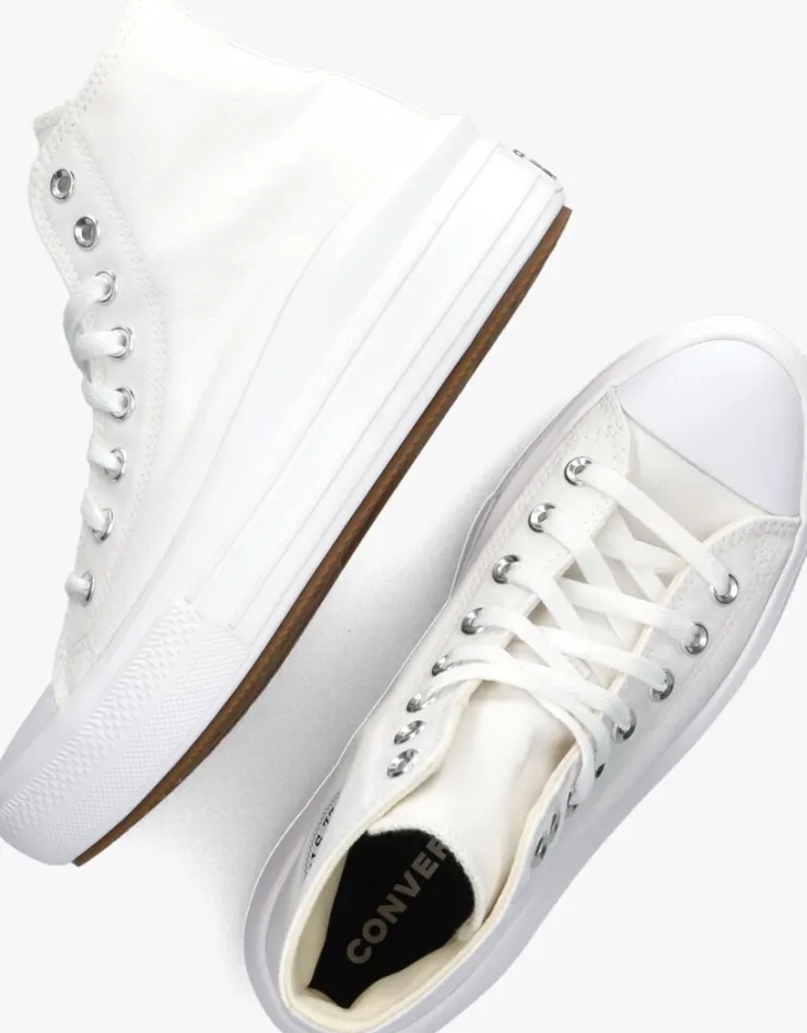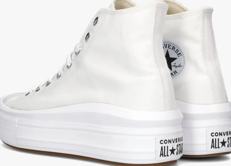 Zoek het hogerop met de super dikke plateauzool van de CHUCK TAYLOR ALL STAR MOVE HI van het bekende schoenenmerk Converse All Star! Deze witte hogeplatformsneaker is perfect om jouw persoonlijke stijl mee te laten zien en is eindeloos te combineren bij al jouw favorieteoutfits. De rubberen neus en stootrand geven deze schoen de kenmerkende Converse-look. De schoen is uitgevoerd in canvasmet een canvas voering, een vast voetbed en een rubberen zooldie oploopt van 4 centimeter bij de tenen tot 6 centimeter onder de hiel. Wat de schoenen extra leuk maakt is het chunky uiterlijk met een extra dikke stootrand.Maatadvies: dit model valt een halve maat groter uit.