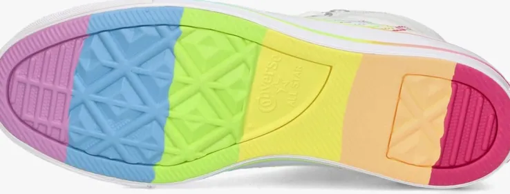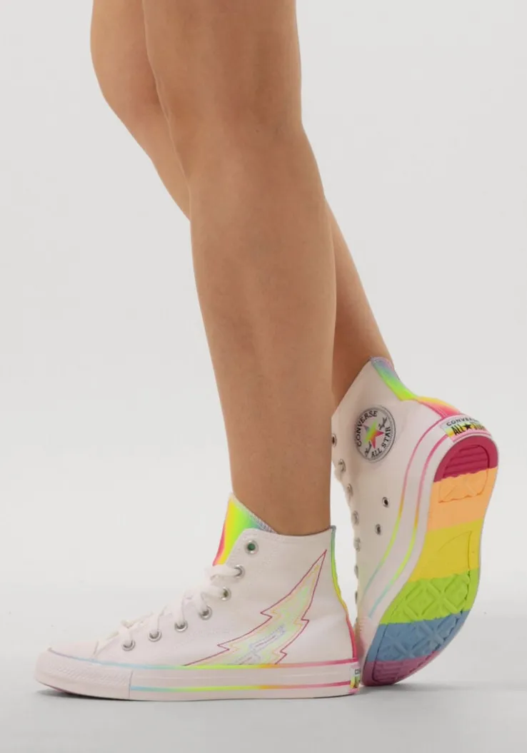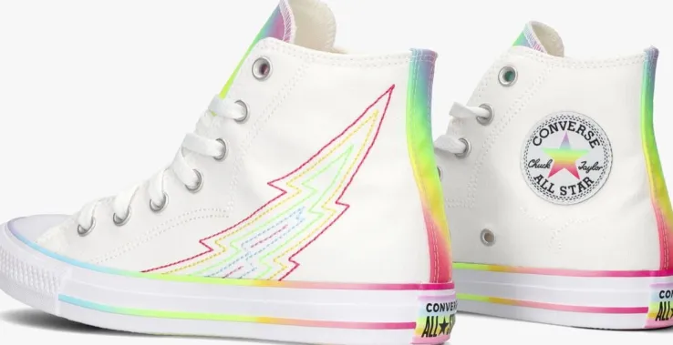 Nonchalante hoge All Star sneaker in canvas textiel is deze CHUCK TAYLOR ALL STAR sneaker van het merk Converse. De buitenkant is gemaakt van canvas textiel met de welbekende converse details zoals de rubberen neus, de wel bekende merkpatch op de zijkant en een rubber merklogo achterop de zoolrand. Ook heeft dit model kleurrijke details. De rubber zool is uitgevoerd met een grof profiel voor veel grip. Combineer hem onder talloze outfits voor een retrolook.
