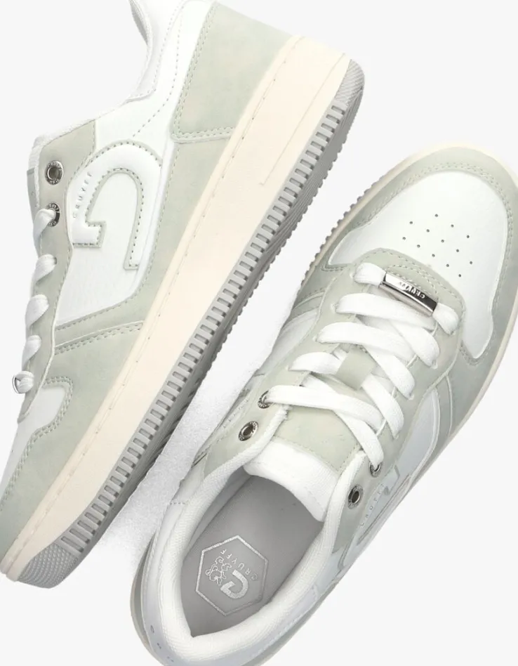 Een nieuwe, frisse update binnen de Cruyff collectie. Dit zwarte model CAMP LOW LUX is uitgevoerd in wit leahterlook met overlays in een mintachtige kleur. Het sportieve karakter wordt bepaald door de retro look zool en de witkleurige beroemde C-flash op de zijkant. De tong is voorzien van een merklabel en de leatherlook hielcap heeft een zilverleurig merkreliëf. De voering is van textiel en het voetbed is uitneembaar. Extra tof is het veterplaatje, de metalen veterringen en het merklabel op de tong. De beige, rubberen zool heeft een zoolrand met diepe groeven wat zorgt voor een nog stoerdere uitstraling. Combineer ‘m bij talloze outfits!