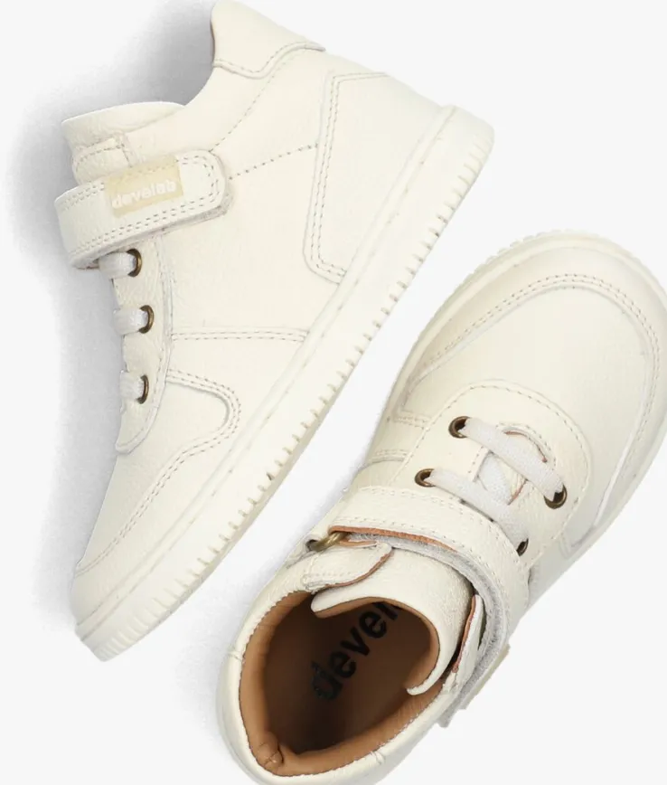 Stoere jongens opgelet! Deze witte hoge sneakers 44309 van DEVELAB zijn perfect voor jou. Gemaakt van structuurleer aan de buitenkant en met een comfortabele leren voering aan de binnenkant, zorgen deze sneakers voor een stoere en trendy look. Met de handige klittenbandsluiting en elastische veters trek je ze makkelijk aan en uit. De rubberen zool zorgt voor een goede grip tijdens het rennen en spelen. Combineer deze sneakers met een stoere jeans en een casual t-shirt voor een coole en comfortabele outfit. Perfect voor een dagje school of een middagje spelen in het park.